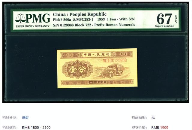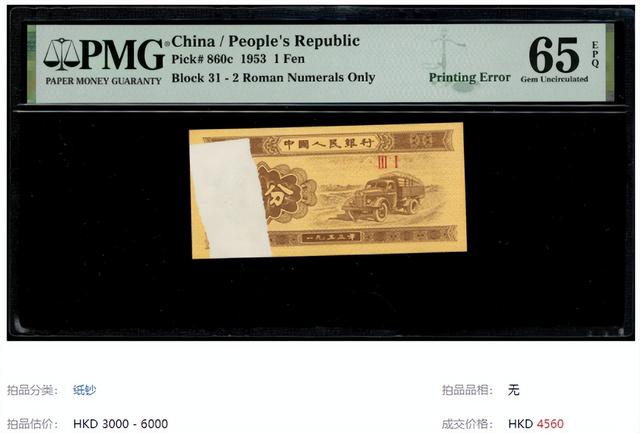 此外,还有印刷错误的无号1分,也能翻40多万倍。 大家在无号1分中,如果能找到上述有明显瑕疵的,可不要小看了。它们已经受到藏友追捧。 不知道你家是否还有1953年的1分纸币,有没有瑕疵币或长号的呢? |