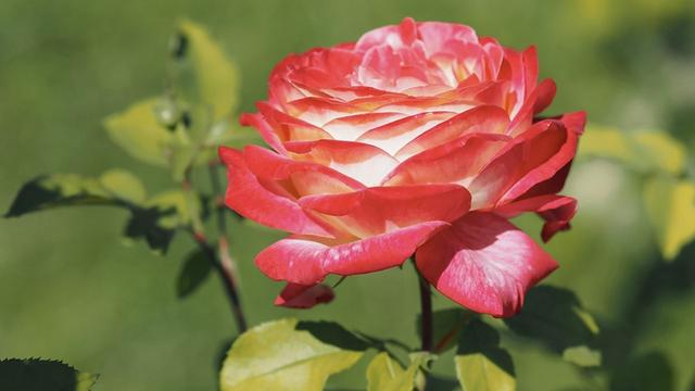 01红双喜 当年,嗯,之所以叫经典品种,就是当年它的名气比现在的龙沙宝石的名气,有过之而无不及。就是到了现在,喜欢红双喜月季的也大有人在,毕竟它的优点太多了,大花,勤花,香气浓郁,花色更是没话说,艳丽四射。要是非要找一找红双喜月季的缺点,那就是在它花朵的单体花期后半段,红色和白色会出现融合的现象,看上去不是那么的娇艳欲滴了。