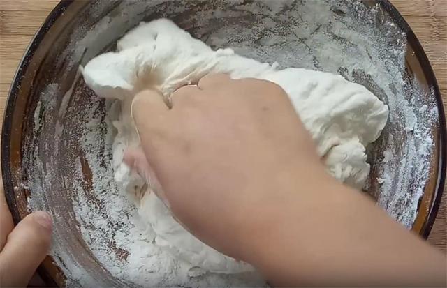 4.醒面是很重要的一步,醒好的面它的拉伸性是特别好的,我们在案板上抹油,取一个面剂,像这样用两手轻轻推开。(www.ws46.com)