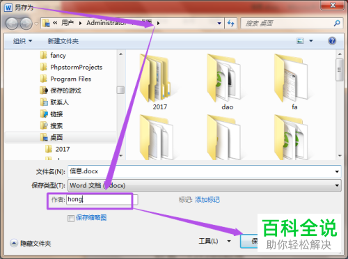 5.在出现的另存为界面可以看到下图所指的“作者”一栏,根据需要输入修改,最好点击保存即可。