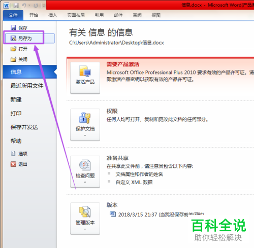 4. 法二:点击左上角“文件”-“另存为”,如下图箭头所指。
