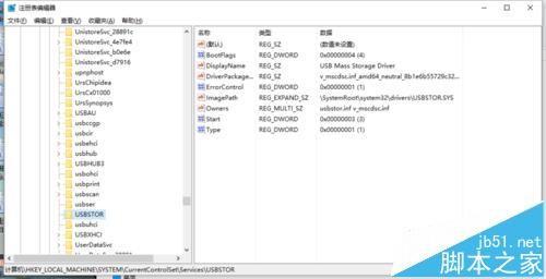 4、在注册表管理器中依次展开:依次展开"HKEY_LOCAL_MACHINE\SYSTEM\CurrentControlSet\Services\USBSTOR”