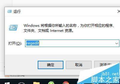 2、在运行中输入“regedit”点确定