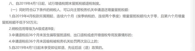 对于一些购进业务比较多,又没有足够的销项,就会形成期末留抵税额,当一直存在留抵税额的时候,实际就占用了企业的资金。根据最新规定,满足一定的条件,留抵税额是可以申请返还的。 我们先来看看政策哪些纳税人可以享受增量留抵退税;
