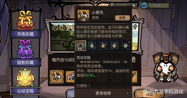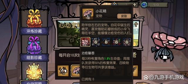 还有一个比较受欢迎的宠物就是小花精,这是一个能够给予治疗的宠物。建立亲密度之后,在技能上也能开启攻击技能,也是个不错的投资选项。