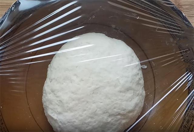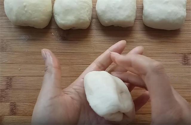 6.我们把面剂两端稍微捏合一下,然后向中间对折,再把面剂醒五分钟,让它松弛一下,这样更容易操作。