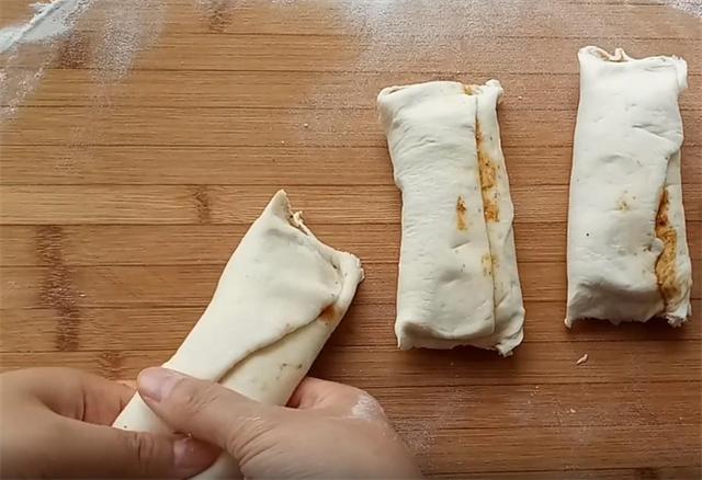 4.把面皮卷起来之后,我们把它下成大小均匀的面剂。