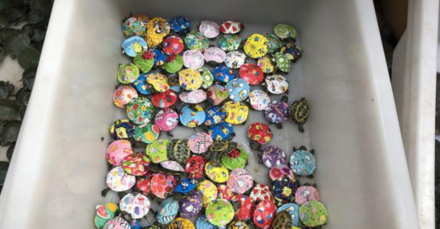 2、其次是龟身上的涂料虽然用刀刮、汽油擦洗等方法能够去除,但这些方法很容易对龟造成更大的伤害。我们可以尝试用胶带粘、用酒精擦洗等相对温和的手段来去除,虽然见效较慢,但只要坚持最终也能把涂料去掉。