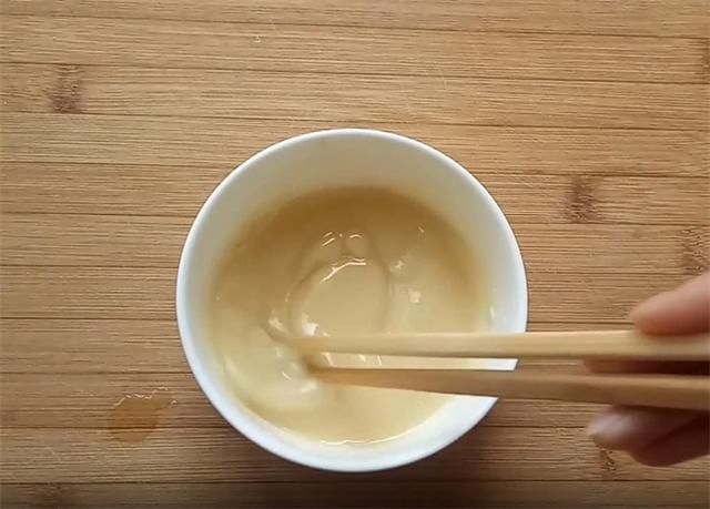 2.接下来我们来制作油酥,面粉20克,油25毫升,把油烧开浇在面粉上,调成较稀的油酥,由于油酥的摩擦力大于油,擀制的时候饼就不会滑动,如果直接抹油的话,擀饼的时候不会滑动。