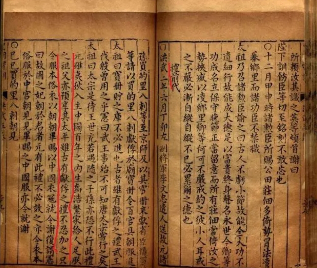 《皇明宝训卷三·礼前代》: 洪武三年,中书以左副将军所奏捷音榜谕天下。帝取观之,见其称元朝官为伪官,元兵为贼众,深责宰相曰:『卿等为宰相当法古昔,致君于圣贤,何乃习为小吏之言,不知大体,岂可称为伪贼耶。元朝虽是戎狄,然主中国为正统之君将及百年,朕与卿等父母皆赖其生养。元之兴亡自是气运,于朕何预,岂宜以此称之。四方有识之士口不敢言,其心决不以为是也。可即改之。 这段话不是朱元璋说得吗?关键的一句:“元朝虽是戎狄,然主中国为正统之君将及百年”。这句文字显然有语病,主语是元朝,宾语是正统之君,元朝是朝代不是君主,不通啊。最诡异的就是这几句话,然主中国为正统之君将及百年,朕与卿等父母皆赖其生养。前面那几句根本就是白话,根本是文言文,后面这几句我查了一下资料是明太祖实录记载的,原话:《明太祖实录》:“元虽夷狄,然君主中国且将百年,朕与卿等父母皆赖其生养”。 那么问了,以“驱逐鞑虏,恢复中华”为口号的朱元璋结束了这动乱不安的天下,建立了汉人的大一统帝国“明朝”。即位后,为巩固统治,彻底根除胡服等文化,颁布了《洪武正韵》,禁止中原领土出现汉语之外的语言,同时严禁穿着胡服。登基四十天后,朱元璋发布“衣冠复古诏”,要求天下臣民,衣冠服饰一律恢复至汉唐服饰,与此同时,朱元璋秉承“上承周汉,下取唐宋”为标准制作了新的汉服,更好的推广到全天下。