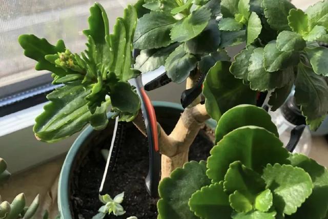 要挑选适合的砧木,玉树的枝干不能太细,否则没有支撑能力,最好是比食指还要粗,需要其上有6到7个分枝。基部的嫩芽全部撸掉,分枝剪半,露出里面翠绿色的组织备用,用锋利的刀片向下切一刀,深约三厘米左右。 长寿花的选择