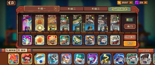 玩家在搭配卡组的时候,可以把前排放置一些单兵能力比较强悍的卡牌,小编推荐的卡组搭配是狂战士、一刀斋、火焰拳、温氏牛仔、弓箭手、击剑手、充能护盾、冲塔高手,其中的狂战士、击剑手、冲塔高手就是单体能力比较高的卡片,先把它们放出来,这样可以先发制人,将敌方打退,要知道抢占先机是比较重要的,而把充能护盾打出来则可以给各位玩家带来一些出其不意的效果,尤其是己方残血的时候,因为一般情况下,敌人会对残血放松警惕,所以小伙伴们就可以抓住这一时机来释放充能护盾。