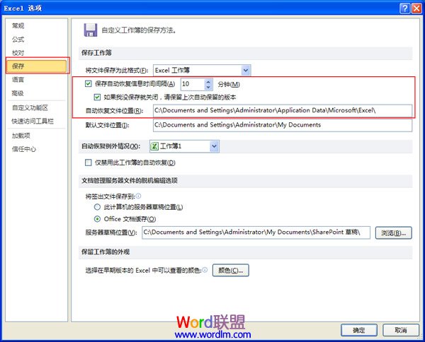 Excel中怎么设置自动保存 1.打开Excel工作簿,单击“文件”按钮,在弹出的下拉菜单中选择“选项”命令。 2.在弹出的“Excel选项”对话框中,选择“保存”选项卡,在“保存工作簿”区域中勾选“如果我没保存就关闭,请保存上次自动保留的版本”复选框,在“自动恢复文件位置”的文本框中输入文件要保存的位置。提示:“保存自动恢复信息时间间隔”的复选框是默认勾选的,在其后的微调框中用户可以对信息保存的间隔时间进行设置,默认的是10分钟。