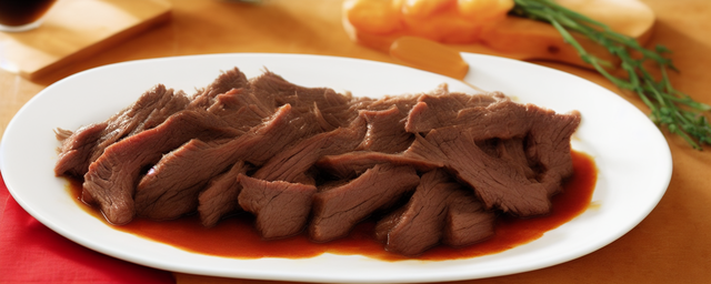 这样做出的自家卤牛肉,肉质鲜嫩,香味浓郁,入口略带辣味,是一道美味的家常菜。可以搭配米饭或面条一起食用。