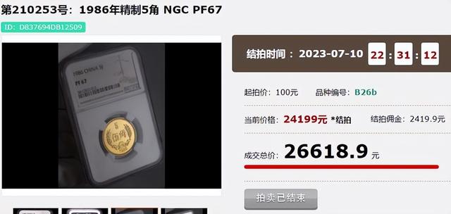 在7月中旬的夏拍中,一枚氧化了的金色五角硬币,因为年份少见的原因还是拍出了26619,相比面值竟然翻了5.2万倍还要多,由此看来这种金色的五角要是能够找到的话可就发了,只是要提醒大家的是。