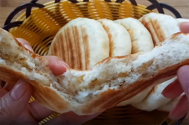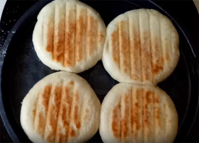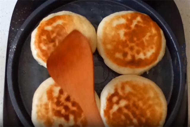 8.时间到我们开盖,在饼上刷少许的凉油,刷凉油能够使饼的表皮更加柔软,翻面之后,我们再烙制约一分钟左右,用手指按压一下,并能够立即回弹,说明内部组织已经熟透,就可以出锅了。