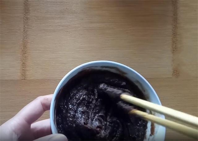 2.准备一碗豆沙馅,用温水稀释一下,这样更容易摊开摊均匀。