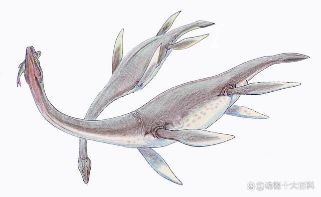 上龙是一种已经绝迹的海洋爬行动物,它属于上龙科,生活在侏罗纪晚期。上龙是一种庞大的捕食动物,以鱼类、鱿鱼和其他海洋爬行动物为食。在被正式命名之前,它们被称为“妖怪”。在约2亿至1.45亿年前的侏罗纪时期,它们是海洋中的顶级捕食者。克柔龙出现在白垩纪早期,它是上龙进化到巅峰状态的庞然大物。它的身体紧凑,便于迅速游动;颈椎只有12块,全长超过8米,仅脑袋就有3米多长。体长最大可达11.73米,重达12.2吨,它的嘴巴几乎和头部一样长。 9、蛇颈龙