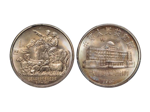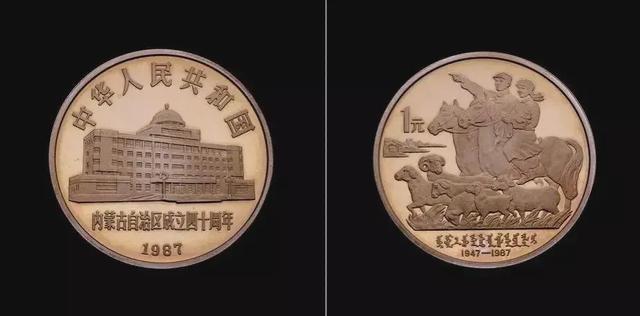 在1987年虽然我国停止发行常规的流通硬币,但是流通纪念币还在发行,它们也是能够等值流通的,只是87年只有一种一元硬币就是内蒙古自治区成立40周年纪念币,它的发行量并不少达到了905.4万枚。