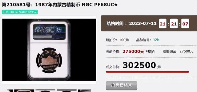 图片中这枚就在7月份的拍卖会中,拍出了30.25万,相比前几年甚至是又翻了倍,这种年份的精制硬币很少流出在外,能拥有的也不是普通人,大家可以去找找普制币,它的市场表现也是不错的。 |
