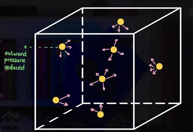 在《理想气体与真实气体》一文中,我以更为复杂的范德华气体作为结尾,但却是点到为止。今天在这篇文章中,我将深入介绍范德华气体,对上篇文章进行补充。为了文章的完整,先简要复习下上次的理想气体。 如果我们知道在某个时间点粒子以某种方式排列,并且我们还知道它们移动的速度,我们就可以利用动量和碰撞知识来预测气体未来会是什么样子的。但是如果没有计算机,预测这种数百万个粒子的气体是非常困难的。事实上,即使使用计算机也很困难。 因此,物理学家会研究整个气体的属性,例如它所占据的总体积、施加在容器壁上的压力和它的温度,然后用理想气体模型进行处理。所谓的理想气体是我们代表真实气体行为的一种方式,它为我们提供了不同数量之间的关系:PV=nRT。 但问题是,我们在利用理想气体方程之前,物理学家必须首先假设组成气体的原子或分子是点状的或无限小的。这是不现实的,因为即使气体粒子通常非常小,但它们也不是无限小,它们各自占据一些少量的空间。因此理想气体模型在粒子彼此相距很远的情况下效果很好,这种情况通常发生在高温下,另一种情况是当给定体积中没有很多气体分子时。对于这样的场景,我们可以使用理想气体方程并获得相当准确地描述气体特性的结果,理想气体和实际真实气体之间的差异可以忽略或可以忽略。 使用理想气体模型的另一种假设是,组成气体的粒子之间不会有电磁力,不会彼此相互作用,除了在粒子碰撞时会相互弹开。这也是非常不现实的,但理想气体模型在这种情况下工作得很好,因为粒子彼此之间的相互作用很弱。 总的来说,理想气体模型在某些特定情况下确实非常准确地描述了气体,但它对于低温下的气体效果不佳,其中粒子变得更加靠近,并且粒子在接近时相互作用变得更大。这就是范德华发挥作用的地方,他对理想气体方程进行了一些修改,以便它能够更准确地表示不同条件下的更多气体,同时在理想气体方程确实起作用的条件下仍然准确。 首先,他对理想气体方程进行重新排列,将理想气体方程的两边除以气体的摩尔数n:P(V/n)=RT。毕竟它是一种气体,它会膨胀以填充我们现在放置它的任何空间,这样我们就可以考虑气体每摩尔的体积。范德华所做的更改是,将气体每单位摩尔的体积再减去一个数量b:P(V/n-b)=RT,这个b是一摩尔气体颗粒所占据的体积。 也就是说,每摩尔气体所占据的空间的总体积减去一摩尔粒子的总体积。这意味着粒子很小但不是无限小,它们本身确实占据了一些体积,相比之下理想气体的粒子是无限小的。对于不同的气体来说,b值将有很大不同,具体取决于其颗粒有多大。颗粒越大,它们占据的空间就越大,b值也越大。(www.ws46.Com) 除了体积的改变,范德华所做的另一个改变涉及粒子之间的相互作用。理想气体假设粒子不会彼此相互作用,然而实际上,当粒子现在靠近时,它们往往会相互施加很小的吸引力——范德华力。 如果我们考虑一个靠近容器中心的粒子,那么平均而言,它与其他粒子的所有相互作用应该相互抵消。这是因为我们的粒子被四面八方的粒子包围,所以所有这些力都作用在它上面,应该在很长一段时间内相互平衡。 但是靠近容器壁的颗粒将受到集中在一侧的力,除非容器壁和粒子之间发生碰撞,否则容器壁不会对粒子施加力。而粒子之间即使没有任何碰撞,另一侧的其他粒子也会施加相互作用力,因此所有这些力都会将粒子拉向容器的中心,从而减少施加在容器壁上的压力。