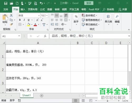 3. 然后,先选中整列,再点击Excel页面上方的“数据”,在其下菜单栏中点击“分列”。 4. 接着,在出现的窗口中选中“分隔符号”单选按钮,再点击“下一步”。 5. 最后,在出现的窗口中找到并勾选“其他”,并输入“,”,再依次点击“下一步”和“确定”即可,效果如下图所示: