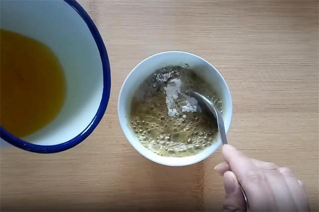 2.接下来我们来制作油酥,干面粉20克,加入五克盐,适量的五香粉,准备食用油40毫升烧开,先把五香粉炸出香味,然后把面糊搅拌均匀备用。
