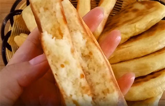 5.时间到,我们开盖翻面,大约再烙制一分钟左右,烙至两面都呈金黄色,用手按压立即回弹,表明内部组织已经熟透,这时就可以出锅了。