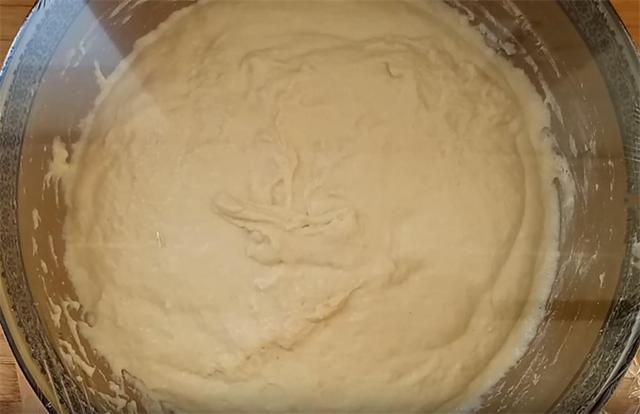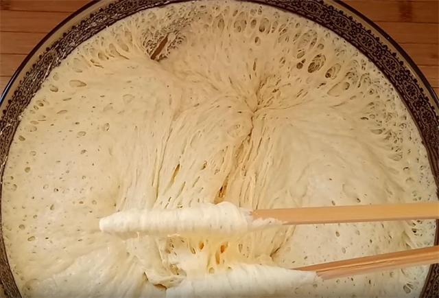 3.面糊醒发至两倍大,充满气孔,然后我们用筷子稍微搅拌一下,排气即可,不要搅拌的太用力。