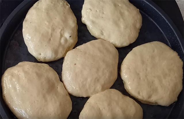 4.起锅开小火,放少许的油,油温五成热即可,下入面糊,接下来我们在手上抹上一些食用油,防止面糊粘手,用手揪起一块面糊,把它掐断,双手把它整理成圆形的面团,下入锅中,盖上盖子焖2分钟左右,使其内部熟透。(www.wS46.com)