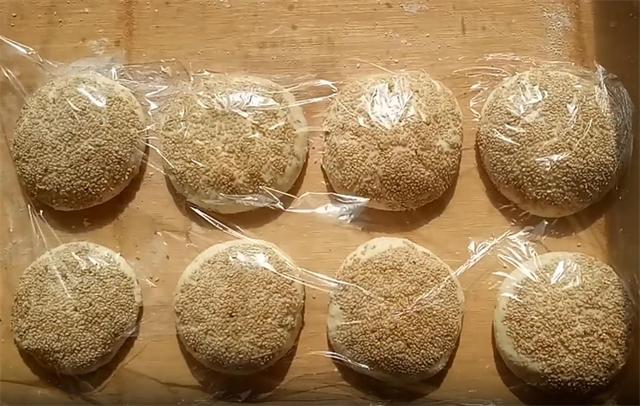 7.所有饼坯做好之后,我们盖上保鲜膜,二次醒发十分钟,这样做出来的饼才能蓬松暄软。