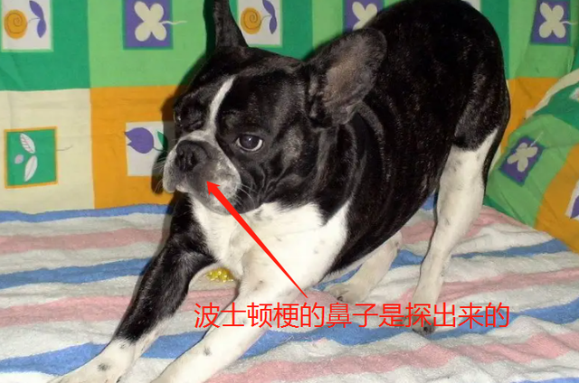 鼻梁不同:从侧面看的话,法斗的鼻梁看起来比较短,鼻子就贴在额头下面,有点类似于异国短毛猫的感觉,波士顿梗的鼻子是探出来的,虽然短,但还是有鼻梁的。