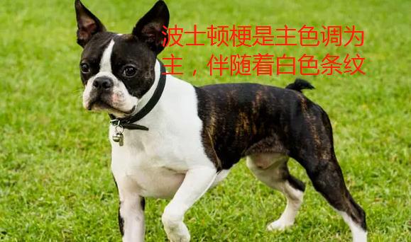颜色不同:波士顿梗的茎上有毛黑色或虎斑,然后一小面积过白色条纹,至于法斗则是以黑白色为主。