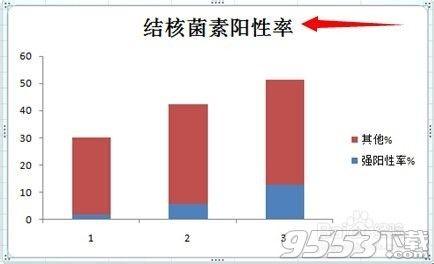 5、添加图表标题。单击图表,然后单击菜单栏选项卡【布局】/【标签】/【图表标题】按钮,此时弹出下拉列表,单击选择【图表上方】,在图表上方即出现“图表标题”文字编辑框;单击激活文字编辑,输入“结核菌素阳性率”。