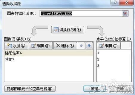 9、单击【轴标签】下方的【确定】按钮,返回【选择数据源】对话框,再单击【确定】按钮,结束设置,添加横坐标轴标签的分段条图就这样大功告成。