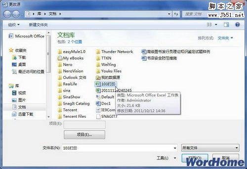 第3步,在打开的“更改源”对话框中,查找并选中更改后的文件链接地址或新文件,单击“打开”按钮。返回“链接”对话框,单击“确定”按钮即可,如图2011110703所示。