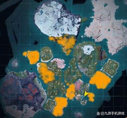 森猛犸在地图中分布的区域很广,大家来到地图的中间位置,除了右上方没有森猛犸,其余的几个有黄色烟雾的岛屿都是有森猛犸存在的。