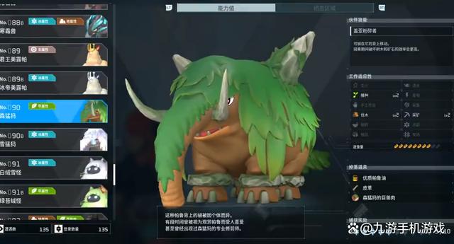 森猛犸的播种、伐木、采矿的适应性都是2级,非常适合前期玩家的资源获取。同时击杀它们还可以获取到大量的帕鲁油和皮革以及巨兽肉,可谓是用途广泛。