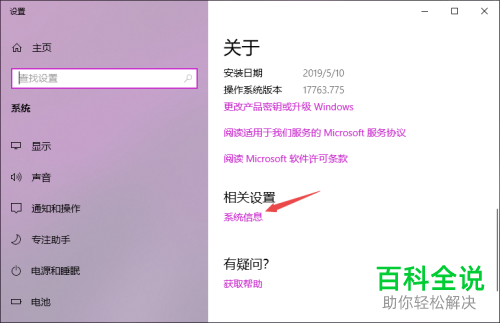3. 在打开的系统设置页面,关于下,点击系统信息的快捷链接;