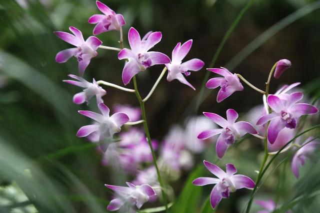 7、石斛兰石斛兰一开始不是用来观赏的,它是一种药材,全株都能入药,后来因为发现其开花时,非常漂亮,加上园艺的不同发展,石斛兰作为花卉的一种,慢慢地进入到人们的视野里,渐渐地被花友们所接受。石斛兰喜阴,养殖在北侧的阳台或者是窗台之上,非常的合适,它的花多开起来也非常的有特色,一串串的,色彩也很丰富,用来装扮家居绝对值得。种植石斛兰一样不能用普通的盆土,要用专用的兰花植料,这点不能省,不然是养不好的。