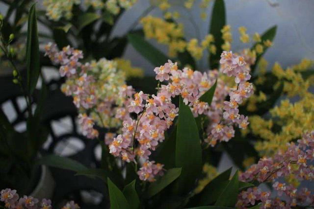 3、文心兰文心兰也是可以阴养得一款花卉,可以养殖在北侧的阳台上,既能避开阳光直射,也能有一定的光照补充,加上良好的通风环境,非常适合文心兰的生长。文心兰生长速度快,适应力强,算得上是养护简单的品种了。它不耐旱,需水量极多,我就见过用水培或使用懒人盆栽培的文心兰。因为浇水较多,盆土使用的植料就需要注意了。可以使用专用的颗粒植料。