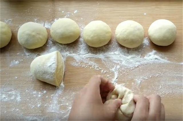 3.然后我们把面剂像这样边折叠边按压,揉成一个圆形的光滑面团,一是增加面的筋性,二是使做出的饼更加漂亮。