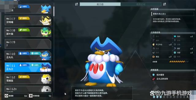企丸王有着五个2级的工作适应性,分别是浇水、手工作业、采矿、冷却和搬运。可以说是天选打工仔了,不剥削一下很难对得起这超模的工作特性。浇水:企丸王可以用它的冰冻波技能来给玩家的农作物浇水,这样可以节省水资源,也可以增加农作物的产量和品质。