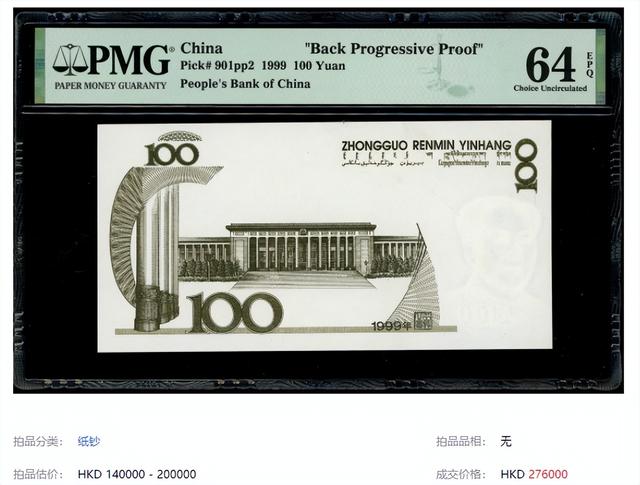 比如上面这种没有完成着色和部分工序的1999年100元纸币,它一整套试印样票,就拍出了27.6万港币。 和工作币进行对比,可以说确实会更胜一筹。(www.wS46.com) 结语因此,我们可以得出结论,如果只是普通的五版纸币,那1999年的50元,就是最珍贵的。