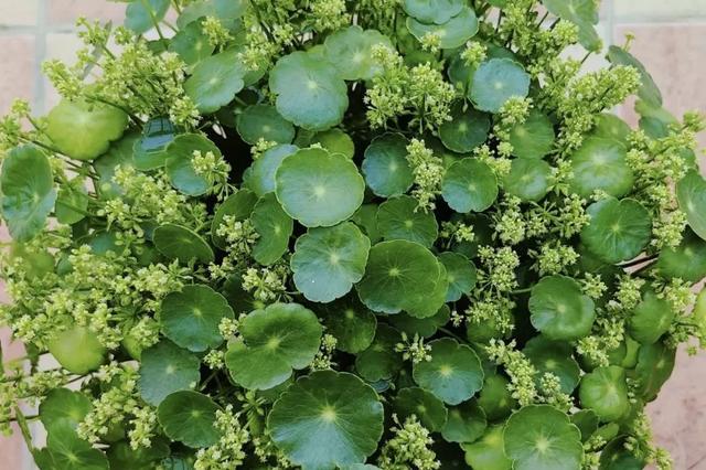 铜钱草学名野天胡荽,是五加科天胡荽属的多年生草本植物,因叶子长得像古代圆圆的铜钱而得此名。铜钱草是现今非常受欢迎的绿化植物,可以土培,也可以水培,尤其是在水体绿化方面非常受欢迎,其叶子翠绿茂密,生命力还非常的顽强,生长习性强健,对环境的适应能力比较强,还特别的耐修剪,即使是给它“剃头”也可以很快长满盆。
