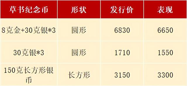 它是我国首枚如意形的纪念币,因此受到了众多藏友的热捧。 而其它规格,包括一直表现出色的心形币,也已经破发了。 紧随其后发行的,是草书纪念币。
