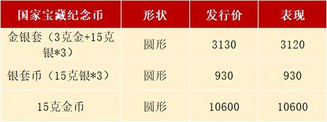事实上,这套纪念币只有150克银币表现不错,如今也略有溢价。而其它两种规格,几乎无人问津,也很少见到成交的情况。 相对来说,吉祥文化要容易出手得多。 最后一套,就是刚发行没多久的国家宝藏纪念币了。