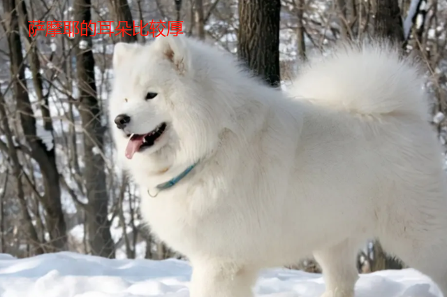 耳朵不同:萨摩耶的耳朵相对较厚,而银狐犬则比较单薄。