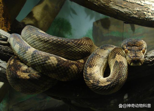 印度蟒在我国广州俗称为南蛇,又称亚洲岩蟒、印度岩蟒、黑尾蟒、印度虎纹蟒,是蛇亚目蟒科蟒属下的一种无毒蛇类,主要分布于南亚印度次大陆。以前,分布于华南及东南亚的缅甸蟒曾被长期视为本种的亚种,直到2009年才确定缅甸蟒是另外一个独立的物种。成年的印度蟒平均能长达4米,体重约为31至58千克或以上,其围量更冠绝其它一般的蛇类。目前,体型最长印度蟒的纪录是5.85米长。 8、地毯蟒(学名:Morelia spilota)(www.ws46.Com)