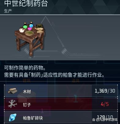 而钉子则是较难获得的,其原因主要是因为钉子需要铁锭炼制,而想要获得铁锭,就需要先找到铁矿然后采集铁矿,只有这样才能制作出钉子。在大家费劲心思做出钉子后,就可以开始第三步,也就是选址了,这一步比较简单,大家只需要找一个可以放的下制药工作台的地方就可以了,找到位置后就可以建造并获得工作台了。